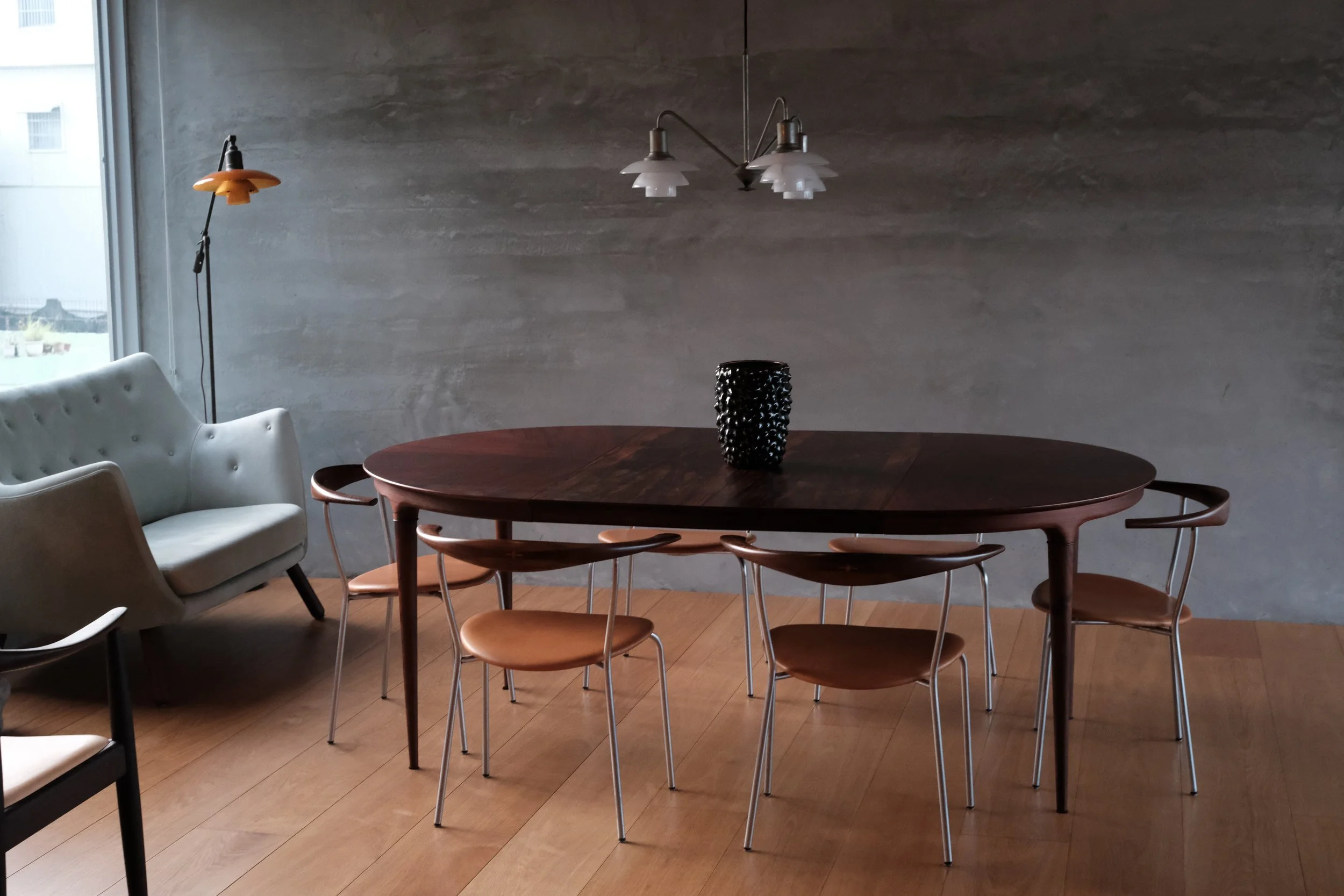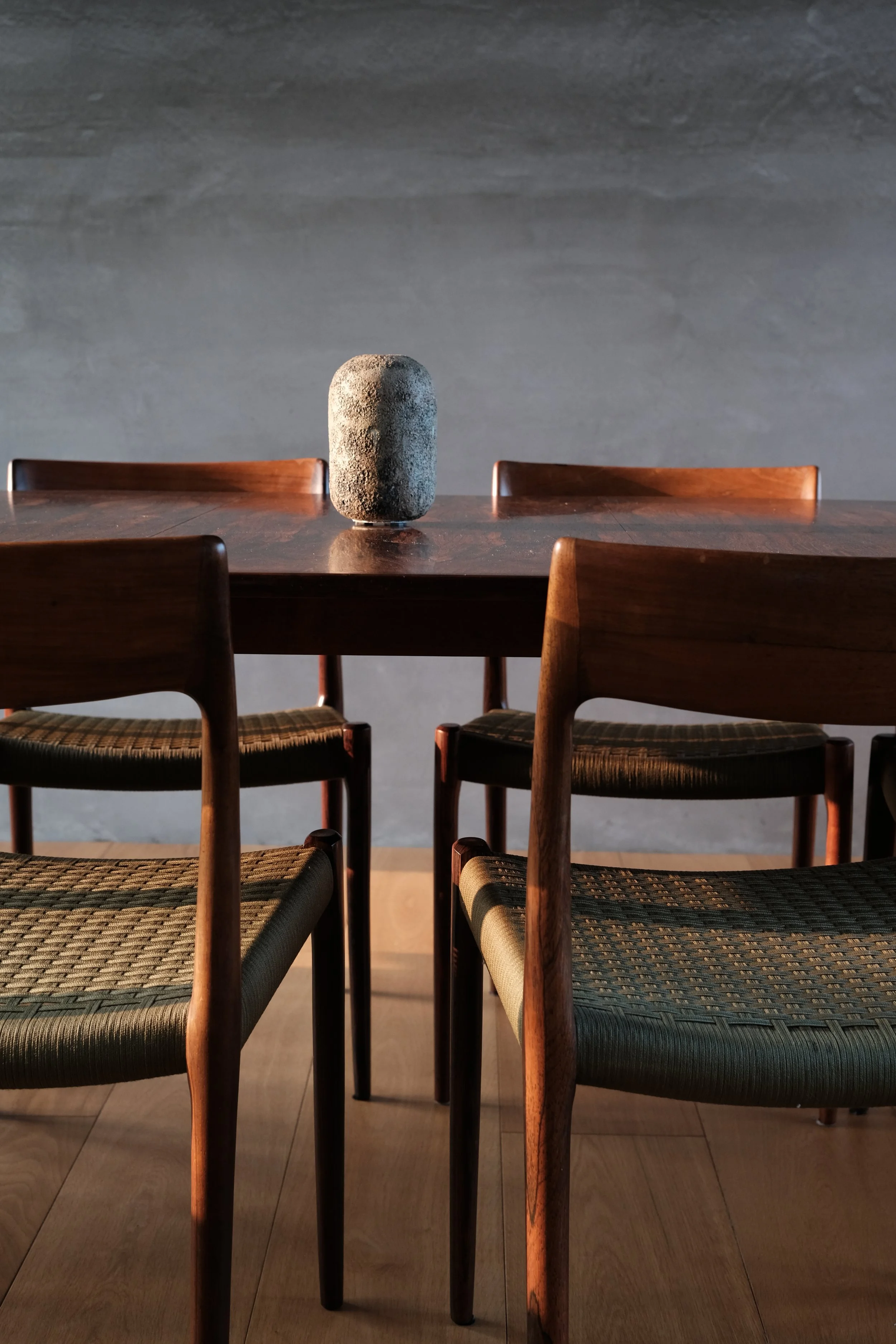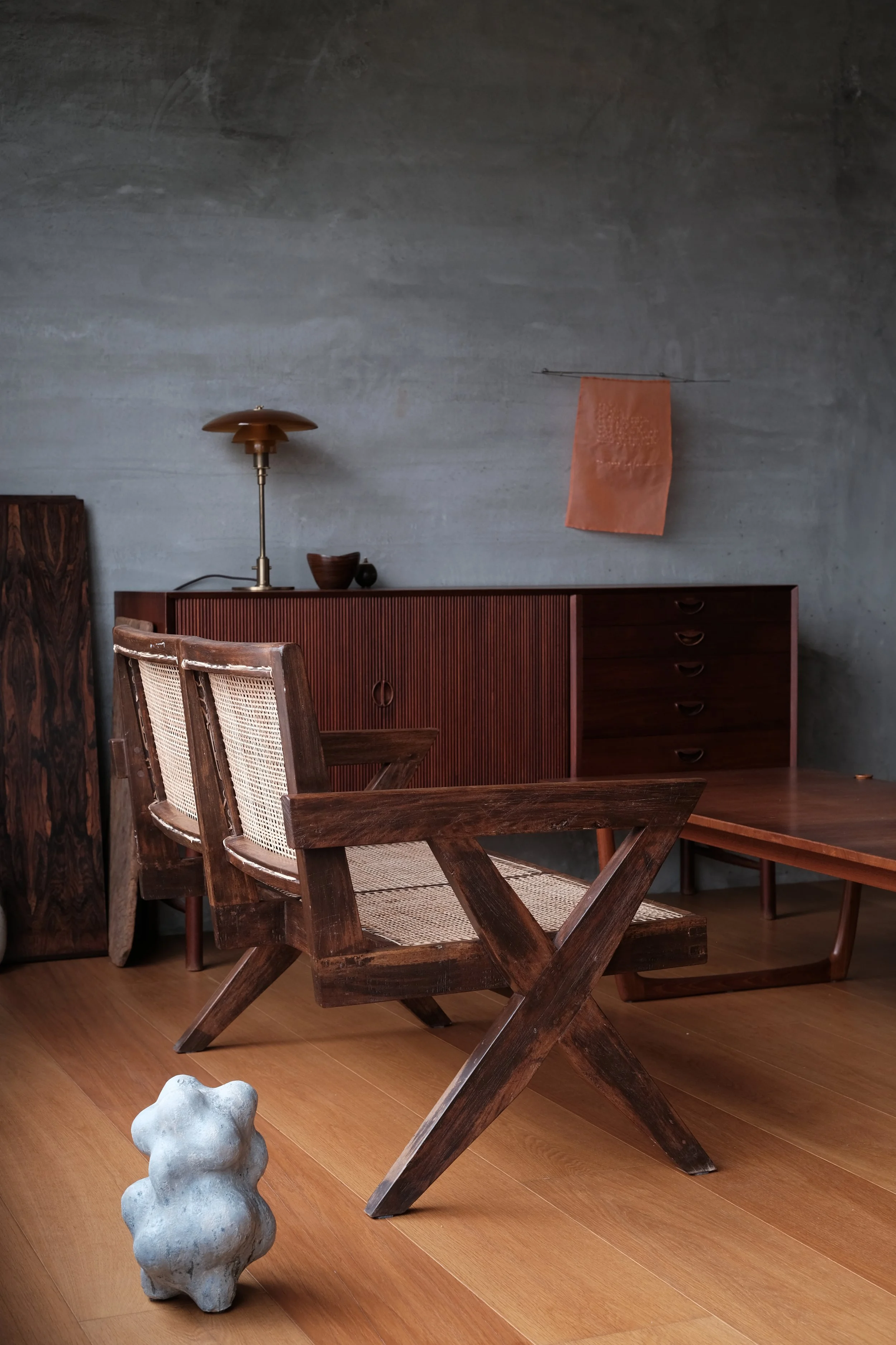 Categories: All Chair Easy Chair Sideboard Lighting Ceramic Decorative Dining Table Coffee Table Desk Sold All | Chair | Easy Chair | Sideboard | Lighting | Ceramic | Decorative | Dining Table | Coffee Table | Desk | Sold | Hans J. Wegner, "The Chair - PP503 in wenge" (2020s) Hans J. Wegner, "The Chair - 100th Birthday Edition" (2014) Hans J. Wegner, A rare set of six JH701 in wenge (1960s) Hans J. Wegner, "The Chair" in mahogany (1980s) Jean Prouvé, Chaise "Tout Bois" (1950s) Axel Salto, a pair of stoneware bowls in Celadon glaze (1944) Niels Møller, 77 dining chairs in Brazilian rosewood (1960s) Niels Møller, "78 Dining Chairs" in rosewood (1970s) Niels Møller, "77 Dining Chairs" in Indian rosewood (1970s) Johannes Andersen, Model 94 in Brazilian Rosewood (1960s) Gurli Elbækgaard, matcha bowl (2023) Pierre Jeanneret, X-leg sofa in cashew for Chandigarh (1950s) Poul Henningsen, PH 2/1 piano lamp (2010s) Peter Hvidt & Orla Mølgaard Nielsen, FD130/3 sofa in Brazilian rosewood (1960s) Berndt Friberg, unique green vase (1963) Torbjørn Afdal, Broadway chair (1950-60s) Hans J. Wegner, a very rare pp512 folding chair in teak (2010s) Aage Würtz, unique blue vase (2022) Poul Kjærholm, "PK 22" easy chair (1950-80s) Sigurd Resell & Adolf Relling, Model 55/2, Bambi chairs in teak (1950-60s) Poul Henningsen, PH 3/2 amber glass, limited edition (2018) Gurli Elbækgaard, an Unika sculpture with blue & green glaze (2023) Niels Møller, a set of four "79 dining chairs" in Brazilian rosewood with braided leather (1960s) Poul Henningsen, PH 2/2 pendant in matte glass (late 1930s) Pierre Jeanneret, a pair of V-leg dining chairs in teak for D.A.V. college, Chandigarh (1958-59) Sigurd Resell & Adolf Relling, Model 56/2, Bambi chair in teak (1950-60s) Niels Møller, a set of four "79 dining chairs" in Indian rosewood (1970s) David Thulstrup, ARV Chair (2018) Johannes Andersen, a set of four dining chairs in Brazilian rosewood (1960s) Pierre Jeanneret, a pigeon hole desk in Indian rosewood for Chandigarh (1950-60s) Pierre Jeanneret, a kangaroo chair in Indian rosewood for Chandigarh’s private residence (1950s) Pierre Jeanneret, a V-leg easy chair in teak for Royal College of Pediatrics and Child Health, Chandigarh (1960s) Pierre Jeanneret & Eulie Chowdury, a "Library Chair" in teak for Chandigarh (1950-60s) Knud Færch, a Cowhorn armchair (1970s) Torbjørn Afdal, a rare Winston chair in Brazilian rosewood (1960s) Ib Kofod-Larsen, a "Seal Chair" in teak (1950-60s) Hans J. Wegner, a "Flag Halyard Chair" (2010s) Pierre Jeanneret, a "Committee" chair in teak for Ambala Cooperative Bank, Chandigarh (1950-60s) Einar Barnes, a paper basket in Brazilian rosewood (1960s) Pierre Jeanneret, a writing chair in teak for Punjab Secretariat Administration, Chandigarh (1960s) Pierre Jeanneret, a set of four V-leg office chairs for Department of Chemistry, Punjab University, Chandigarh (1960s) Pierre Jeanneret, a V-leg float back office chair for HAFED, Chandigarh (1960s) Annemette Kissow, circular bowls (2020s) Pierre Jeanneret, a slated writing chair in cashew wood for Department of Mechanical Engineering, Punjab University, Chandigarh (1960s) Niels Møller, a pair of 62 armchairs in teak (1960s) Gurli Elbækgaard, an Unika vase (2022) Ib Kofod-Larsen, an Elizabeth chair in Brazilian rosewood (1950-60s) Torbjørn Afdal, a Broadway chair in teak (1950-60s) Berndt Friberg, a pair of tea bowls (1976) Pierre Jeanneret, an X-leg office chair in teak for College of Architecture, Punjab University, Chandigarh (1963-64) Aage Würtz, vases (2022) Niels Møller, model 78 dining chairs in Indian rosewood with brown leather (1970s) Fredrik Kayser, a very rare 713 chair in teak (1960s) Føre furniture, CH03 armchairs in wenge (2021) Pierre Jeanneret, a V-leg easy chair in teak for Punjab Agricultural University (1960s) Aage Würtz, blue glaze cups (2022) Sigurd Resell & Adolf Relling, Model 55/1, Bambi chairs in teak (1950-60s) Poul Henningsen, PH Akademikroner (2010s) Axel Salto, a round stoneware bowl (1950s) Poul Henningsen, a PH 4/4 pendant (1930s) Knud Færch, 532 dinning chairs in Brazilian rosewood (1960s) Pierre Jeanneret, a rare set of four V-leg office chairs in teak with front markings (1950-60s) Sold out Pierre Jeanneret, a V-leg office chair in Indian rosewood for Department of Sociology, Punjab University, Chandigarh (1960s) Sold out Berndt Friberg, a tea bowl (1957) Sold out Pierre Jeanneret, a V-leg chair in teak for Chandigarh (1950s) Sold out Pierre Jeanneret, a kangaroo chair in teak for Chandigarh’s private residence (1950s) Sold out Hans J Wegner, a pp701 in cherry (2020s) Sold out Hans J Wegner, a pp518 in oak (2010s) Sold out Finn Juhl, a NV46 armchair in Brazilian rosewood (1946) Sold out Finn Juhl, a NV46 armchair in Brazilian rosewood (1946) Sold out Hans J Wegner, a pp701 in walnut (2020s) Sold out Finn Juhl, Spade chairs in Brazilian rosewood (1950-60s) Sold out Pierre Yovanovitch, FLARE floor lamp (2022) Sold out Pierre Jeanneret, a pair of V-leg float back chairs in Indian rosewood for Chandigarh (1950s) Sold out Finn Juhl, a rare NV55 chair in teak with adjustable back (1950-60s) Sold out Pierre Jeanneret, a rare V-leg 3 seater in teak for Chandigarh’s private residence (1950s) Sold out Peter Hvidt & Orla Mølgaard Nielsen, a set of teak bookcases with custom sizes for the family of Søborg Møbler’s owner (1950s) Sold out Pierre Jeanneret, an X-leg easy chair in Indian rosewood for State Bank of India, Chandigarh (1950-60s) Sold out Pierre Jeanneret, a pigeon hole desk in Indian rosewood for Chandigarh (1950-60s) Sold out Po-Chin Yang, a long bench in ziricote (2022) Sold out Peter Hvidt & Orla Mølgaard Nielsen, a long coffee table in Brazilian rosewood (1960s) Sold out Pierre Yovanovitch, Paw 1 & Paw 2 wall lamps Sold out Poul Henningsen, a PH 1/1 natbordlampe (1930s) Sold out Hans J Wegner, a pair of pp701 ash (2020s) Sold out Pierre Jeanneret, a V-leg office chair in Indian rosewood fo