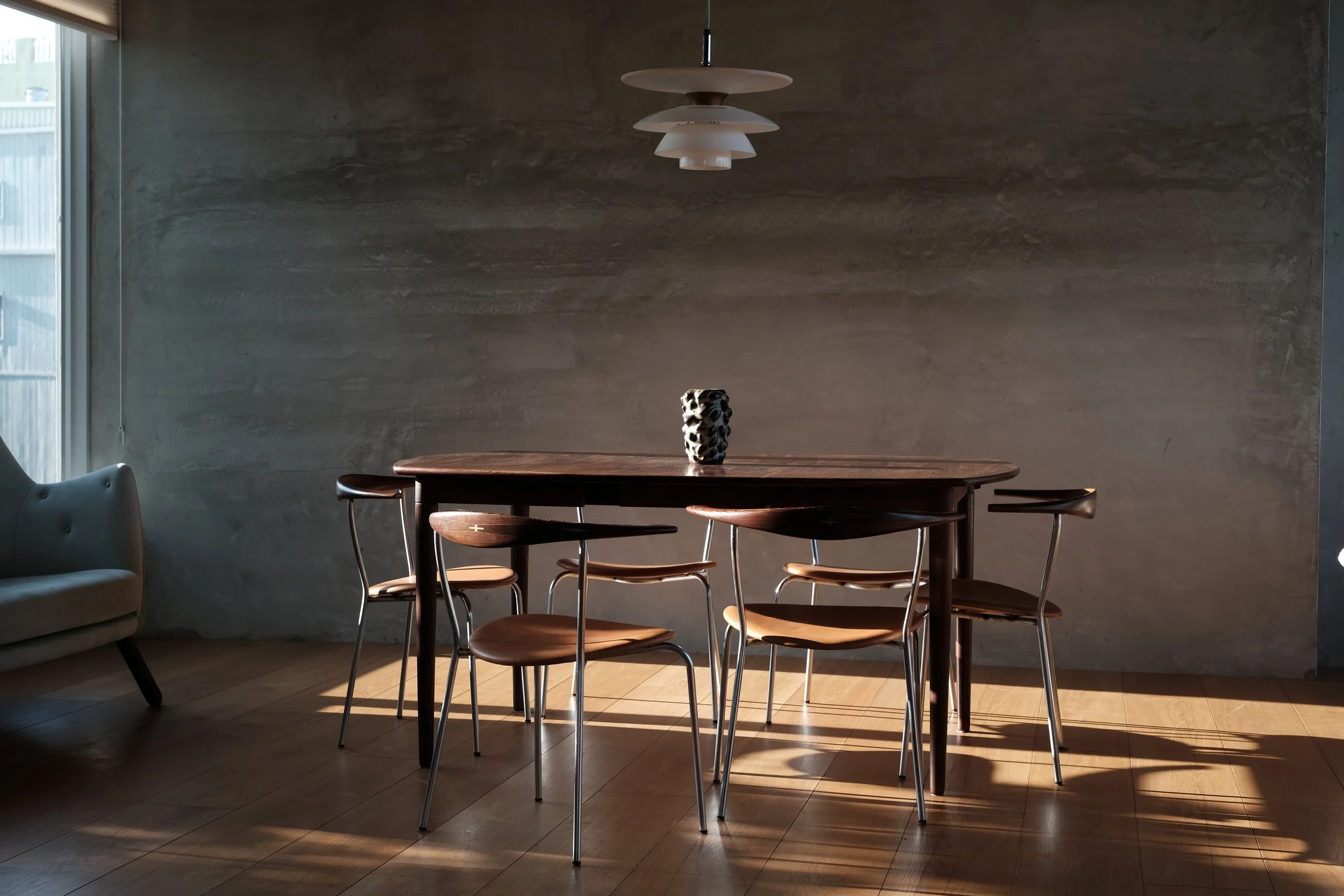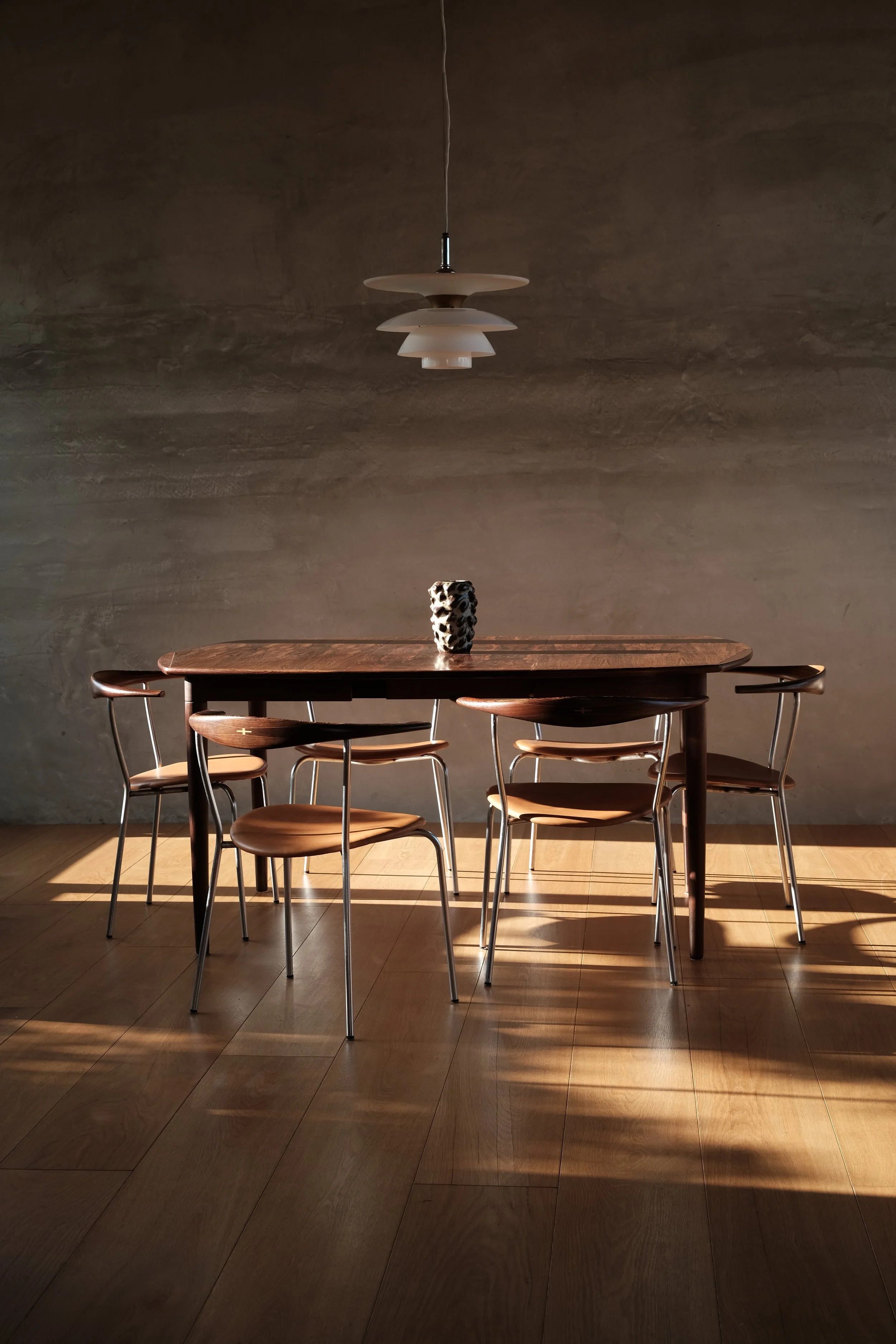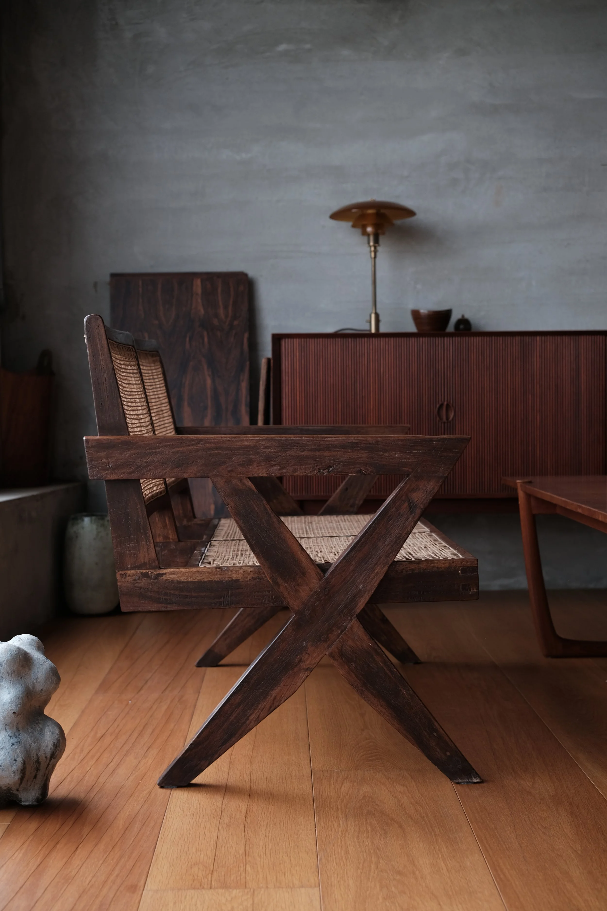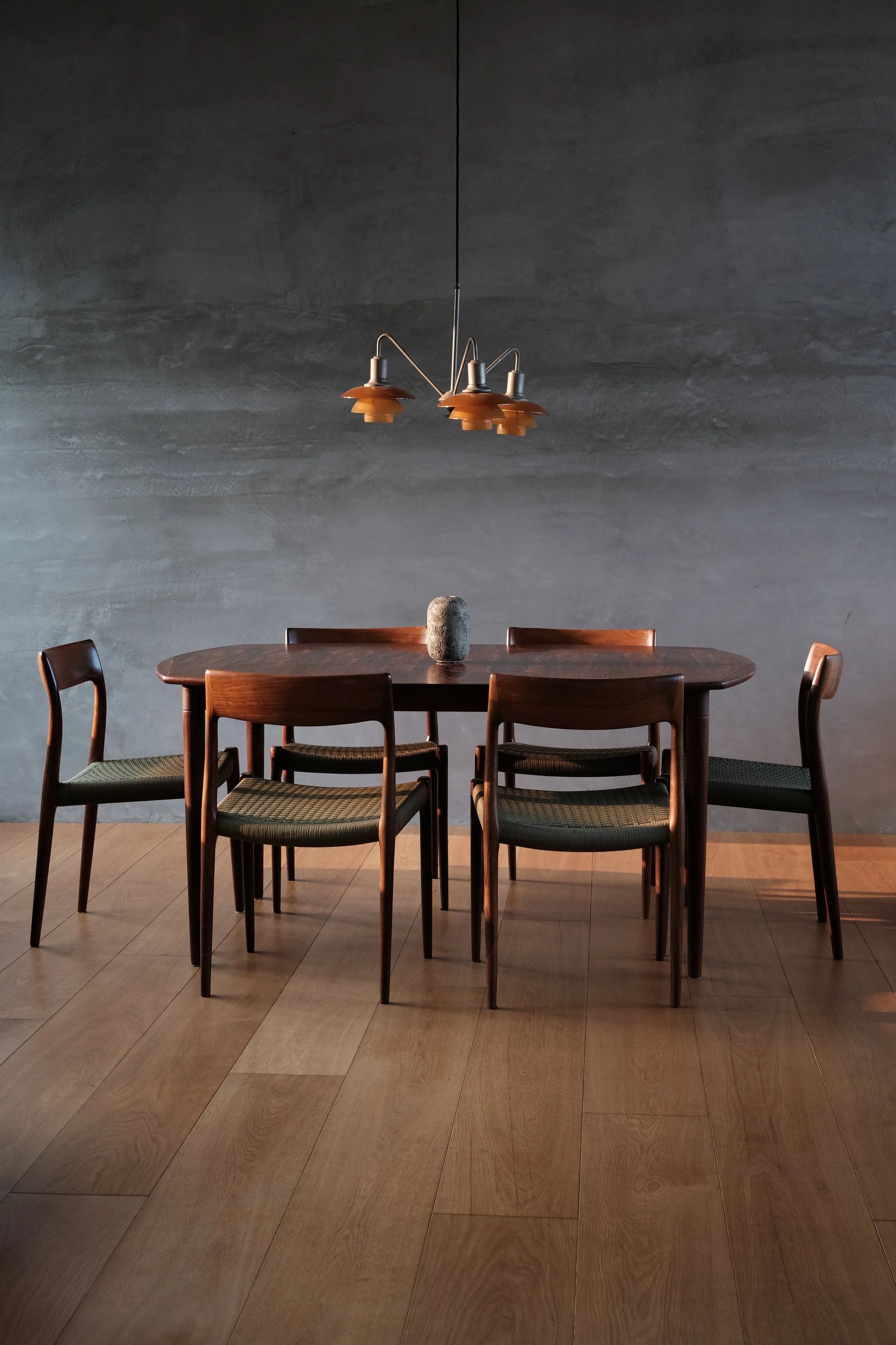 Categories: All Chair Easy Chair Sideboard Lighting Ceramic Decorative Dining Table Coffee Table Desk Sold All | Chair | Easy Chair | Sideboard | Lighting | Ceramic | Decorative | Dining Table | Coffee Table | Desk | Sold | Hans J. Wegner, "The Chair - PP503 in wenge" (2020s) Hans J. Wegner, "The Chair - 100th Birthday Edition" (2014) Hans J. Wegner, A rare set of six JH701 in wenge (1960s) Hans J. Wegner, "The Chair" in mahogany (1980s) Jean Prouvé, Chaise "Tout Bois" (1950s) Axel Salto, a pair of stoneware bowls in Celadon glaze (1944) Niels Møller, 77 dining chairs in Brazilian rosewood (1960s) Niels Møller, "78 Dining Chairs" in rosewood (1970s) Niels Møller, "77 Dining Chairs" in Indian rosewood (1970s) Johannes Andersen, Model 94 in Brazilian Rosewood (1960s) Gurli Elbækgaard, matcha bowl (2023) Pierre Jeanneret, X-leg sofa in cashew for Chandigarh (1950s) Poul Henningsen, PH 2/1 piano lamp (2010s) Peter Hvidt & Orla Mølgaard Nielsen, FD130/3 sofa in Brazilian rosewood (1960s) Berndt Friberg, unique green vase (1963) Torbjørn Afdal, Broadway chair (1950-60s) Hans J. Wegner, a very rare pp512 folding chair in teak (2010s) Aage Würtz, unique blue vase (2022) Poul Kjærholm, "PK 22" easy chair (1950-80s) Sigurd Resell & Adolf Relling, Model 55/2, Bambi chairs in teak (1950-60s) Poul Henningsen, PH 3/2 amber glass, limited edition (2018) Gurli Elbækgaard, an Unika sculpture with blue & green glaze (2023) Niels Møller, a set of four "79 dining chairs" in Brazilian rosewood with braided leather (1960s) Poul Henningsen, PH 2/2 pendant in matte glass (late 1930s) Pierre Jeanneret, a pair of V-leg dining chairs in teak for D.A.V. college, Chandigarh (1958-59) Sigurd Resell & Adolf Relling, Model 56/2, Bambi chair in teak (1950-60s) Niels Møller, a set of four "79 dining chairs" in Indian rosewood (1970s) David Thulstrup, ARV Chair (2018) Johannes Andersen, a set of four dining chairs in Brazilian rosewood (1960s) Pierre Jeanneret, a pigeon hole desk in Indian rosewood for Chandigarh (1950-60s) Pierre Jeanneret, a kangaroo chair in Indian rosewood for Chandigarh’s private residence (1950s) Pierre Jeanneret, a V-leg easy chair in teak for Royal College of Pediatrics and Child Health, Chandigarh (1960s) Pierre Jeanneret & Eulie Chowdury, a "Library Chair" in teak for Chandigarh (1950-60s) Knud Færch, a Cowhorn armchair (1970s) Torbjørn Afdal, a rare Winston chair in Brazilian rosewood (1960s) Ib Kofod-Larsen, a "Seal Chair" in teak (1950-60s) Hans J. Wegner, a "Flag Halyard Chair" (2010s) Pierre Jeanneret, a "Committee" chair in teak for Ambala Cooperative Bank, Chandigarh (1950-60s) Einar Barnes, a paper basket in Brazilian rosewood (1960s) Pierre Jeanneret, a writing chair in teak for Punjab Secretariat Administration, Chandigarh (1960s) Pierre Jeanneret, a set of four V-leg office chairs for Department of Chemistry, Punjab University, Chandigarh (1960s) Pierre Jeanneret, a V-leg float back office chair for HAFED, Chandigarh (1960s) Annemette Kissow, circular bowls (2020s) Pierre Jeanneret, a slated writing chair in cashew wood for Department of Mechanical Engineering, Punjab University, Chandigarh (1960s) Niels Møller, a pair of 62 armchairs in teak (1960s) Gurli Elbækgaard, an Unika vase (2022) Ib Kofod-Larsen, an Elizabeth chair in Brazilian rosewood (1950-60s) Torbjørn Afdal, a Broadway chair in teak (1950-60s) Berndt Friberg, a pair of tea bowls (1976) Pierre Jeanneret, an X-leg office chair in teak for College of Architecture, Punjab University, Chandigarh (1963-64) Aage Würtz, vases (2022) Niels Møller, model 78 dining chairs in Indian rosewood with brown leather (1970s) Fredrik Kayser, a very rare 713 chair in teak (1960s) Føre furniture, CH03 armchairs in wenge (2021) Pierre Jeanneret, a V-leg easy chair in teak for Punjab Agricultural University (1960s) Aage Würtz, blue glaze cups (2022) Sigurd Resell & Adolf Relling, Model 55/1, Bambi chairs in teak (1950-60s) Poul Henningsen, PH Akademikroner (2010s) Axel Salto, a round stoneware bowl (1950s) Poul Henningsen, a PH 4/4 pendant (1930s) Knud Færch, 532 dinning chairs in Brazilian rosewood (1960s) Pierre Jeanneret, a rare set of four V-leg office chairs in teak with front markings (1950-60s) Sold out Pierre Jeanneret, a V-leg office chair in Indian rosewood for Department of Sociology, Punjab University, Chandigarh (1960s) Sold out Berndt Friberg, a tea bowl (1957) Sold out Pierre Jeanneret, a V-leg chair in teak for Chandigarh (1950s) Sold out Pierre Jeanneret, a kangaroo chair in teak for Chandigarh’s private residence (1950s) Sold out Hans J Wegner, a pp701 in cherry (2020s) Sold out Hans J Wegner, a pp518 in oak (2010s) Sold out Finn Juhl, a NV46 armchair in Brazilian rosewood (1946) Sold out Finn Juhl, a NV46 armchair in Brazilian rosewood (1946) Sold out Hans J Wegner, a pp701 in walnut (2020s) Sold out Finn Juhl, Spade chairs in Brazilian rosewood (1950-60s) Sold out Pierre Yovanovitch, FLARE floor lamp (2022) Sold out Pierre Jeanneret, a pair of V-leg float back chairs in Indian rosewood for Chandigarh (1950s) Sold out Finn Juhl, a rare NV55 chair in teak with adjustable back (1950-60s) Sold out Pierre Jeanneret, a rare V-leg 3 seater in teak for Chandigarh’s private residence (1950s) Sold out Peter Hvidt & Orla Mølgaard Nielsen, a set of teak bookcases with custom sizes for the family of Søborg Møbler’s owner (1950s) Sold out Pierre Jeanneret, an X-leg easy chair in Indian rosewood for State Bank of India, Chandigarh (1950-60s) Sold out Pierre Jeanneret, a pigeon hole desk in Indian rosewood for Chandigarh (1950-60s) Sold out Po-Chin Yang, a long bench in ziricote (2022) Sold out Peter Hvidt & Orla Mølgaard Nielsen, a long coffee table in Brazilian rosewood (1960s) Sold out Pierre Yovanovitch, Paw 1 & Paw 2 wall lamps Sold out Poul Henningsen, a PH 1/1 natbordlampe (1930s) Sold out Hans J Wegner, a pair of pp701 ash (2020s) Sold out Pierre Jeanneret, a V-leg office chair in Indian rosewood fo